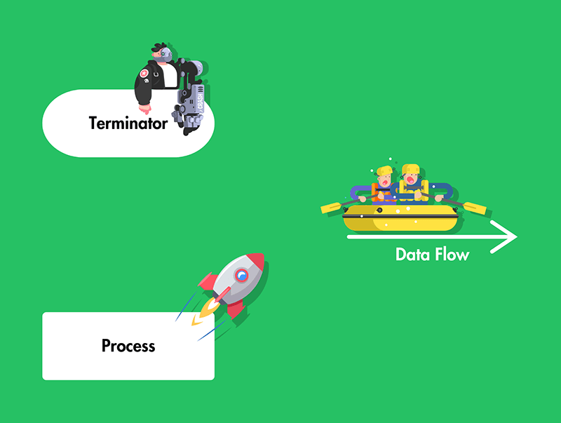 It indicates where data is entered into or returned from a process, like “Enter username” or “Show results.”