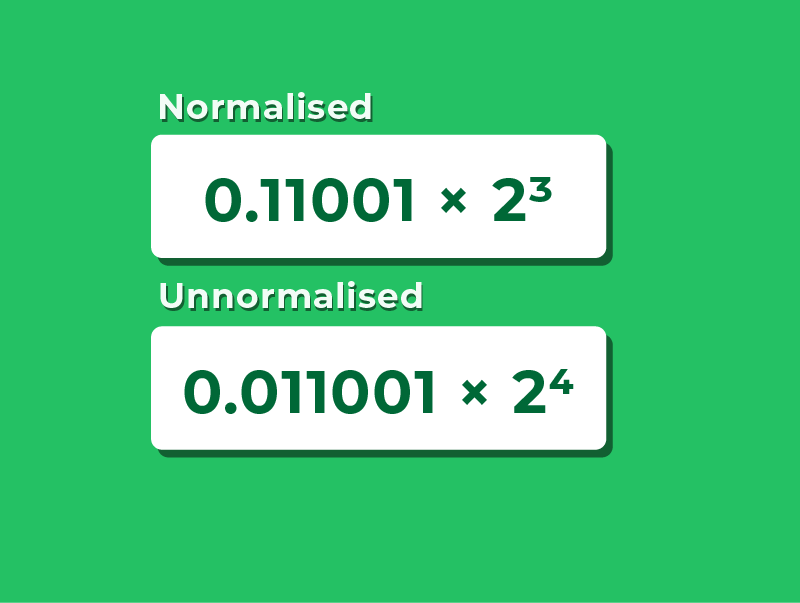 - 0.011001 × 2⁴ ← not normalised