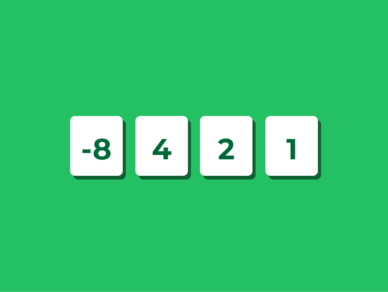 First, place each bit into its column values: −8, 4, 2, and 1.