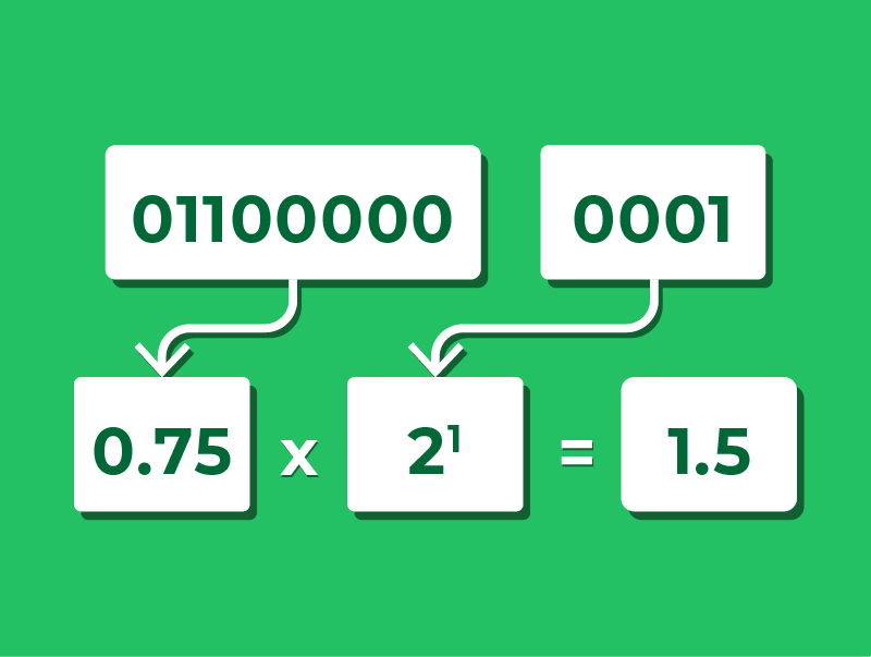 - Exponent – tells us how far to move the binary point
