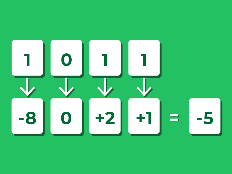 In a 4-bit two’s complement system, the columns represent: −8, 4, 2 & 1.