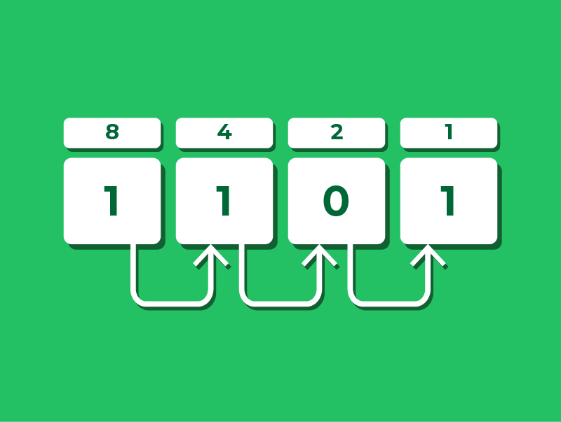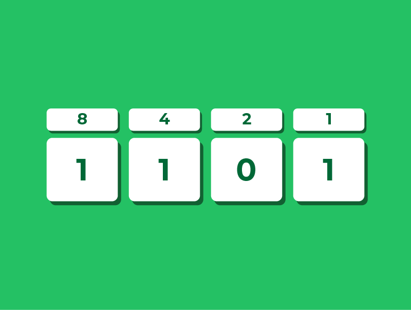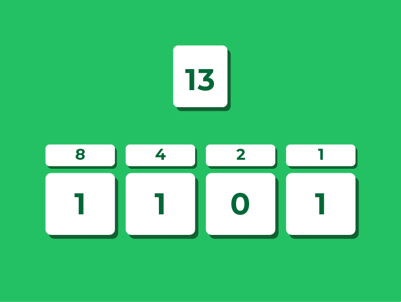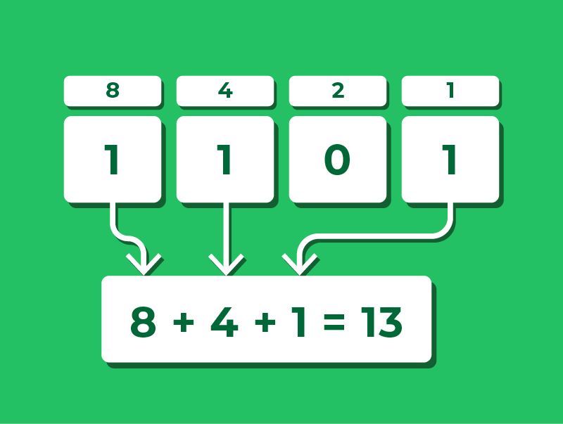 Then, we simply need to add up these column heading values: 8 + 4 + 1 = 13.