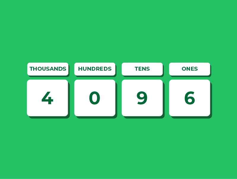 Binary numbers work very similarly to decimal, except the columns increase in multiples of two, and each column can only store a 0 or 1.