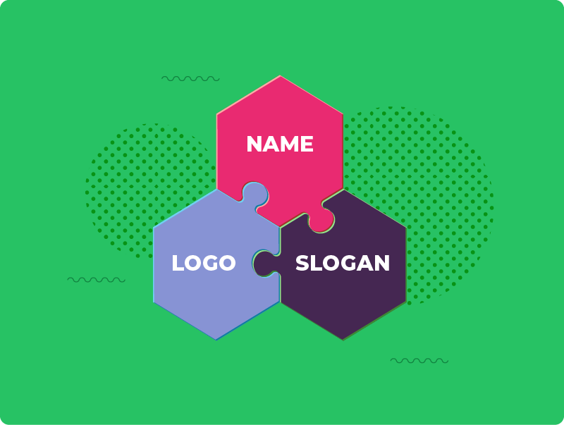 The core components of visual identity are the name, logo, and slogan or strap line.